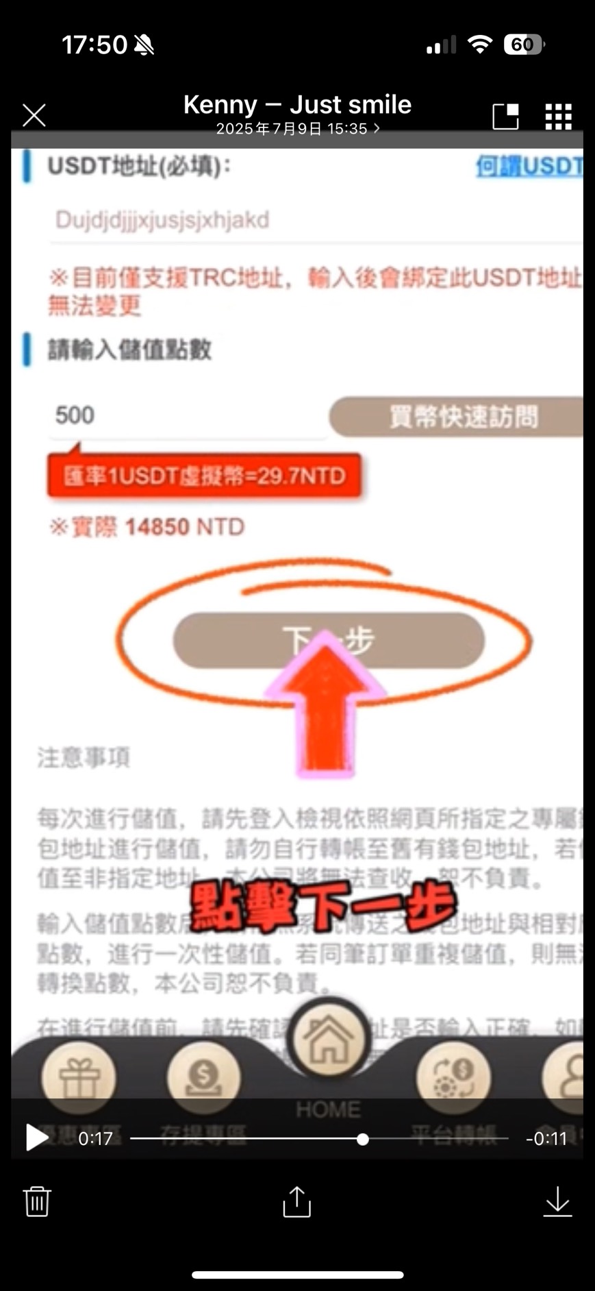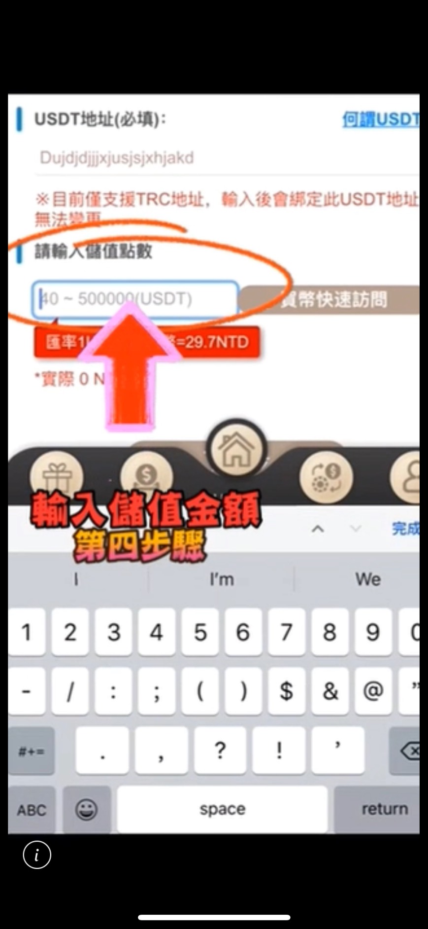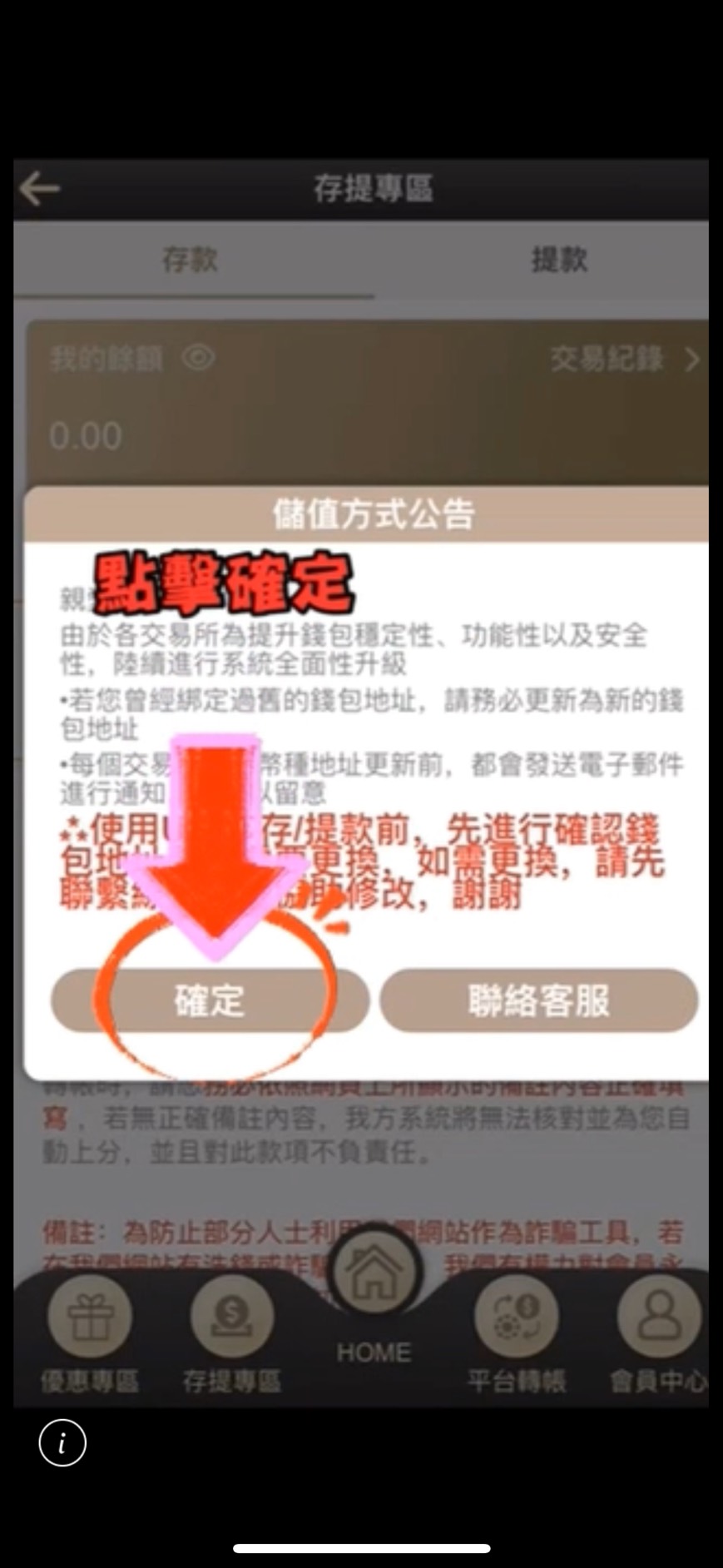 ➏ 購買完成USDT後,請於平台USDT存款渠道進行列單,複製產生的TRC20-USDT地址或者儲存二維碼